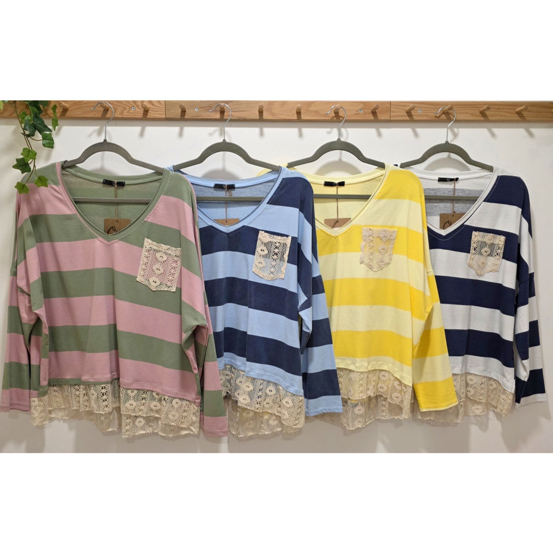Camiseta cómoda y femenina con diseño de rayas y detalle de puntilla en el bajo y bolsillo decorativo en el pecho. Su tejido suave y elástico la hace perfecta para el día a día, combinando estilo y comodidad. Ideal para llevar con vaqueros, leggings o pantalones casuales. ✨