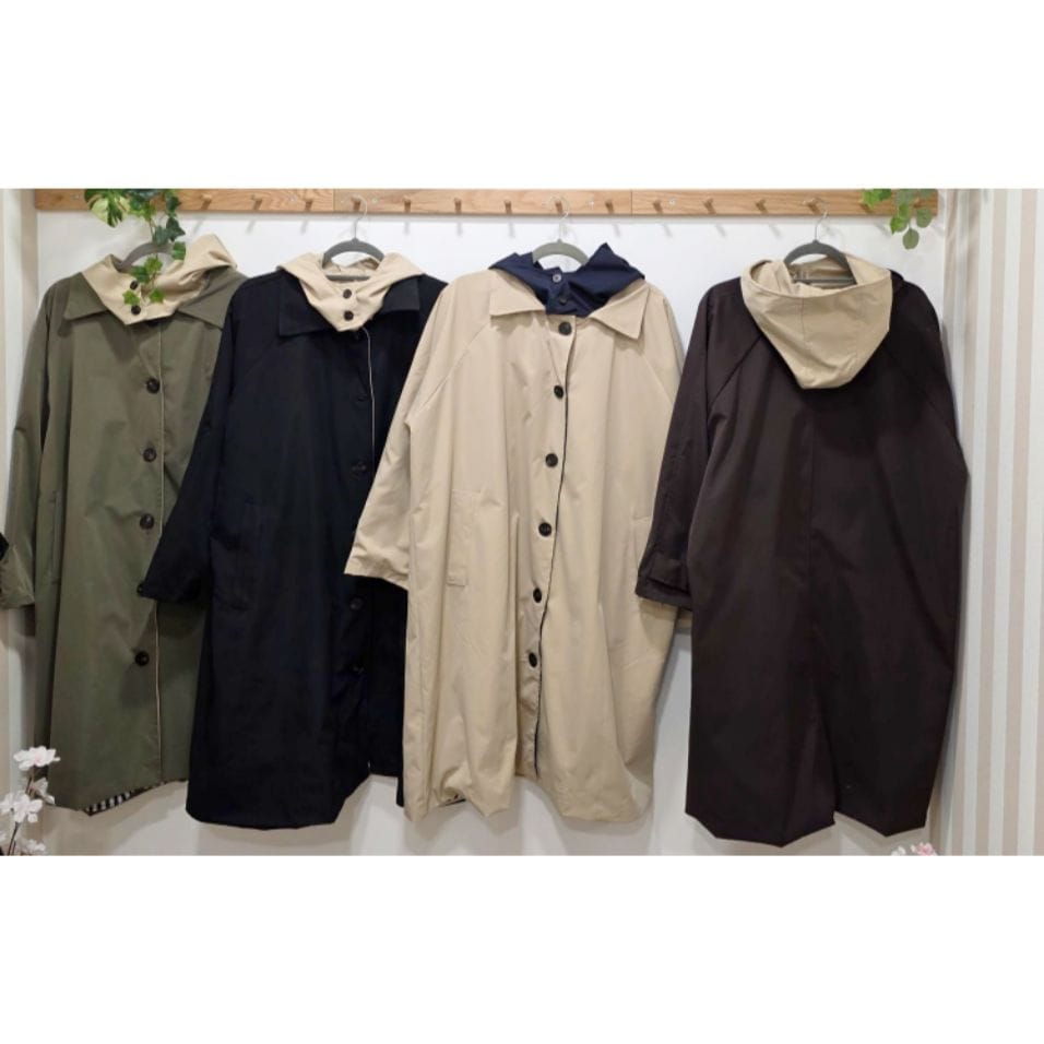 Gabardina cómoda y versátil, ideal para entretiempo o días de lluvia ligera. Su diseño amplio permite llevarla sobre diferentes prendas, manteniendo un estilo moderno y práctico. Cuenta con cierre frontal de botones y capucha integrada para mayor protección.