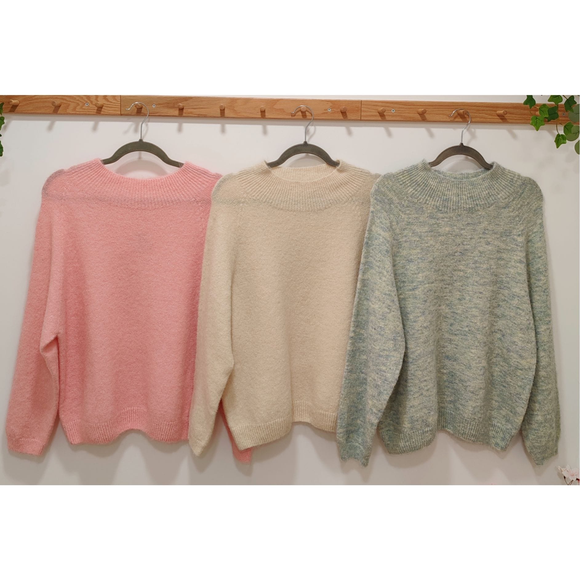 Jersey de punto muy suave y cómodo, perfecto para el día a día en temporada de frío. Tiene un diseño sencillo y versátil con cuello redondo ligeramente alto y manga larga, ideal para combinar con jeans, pantalones o faldas. Su tejido es agradable al tacto y aporta calidez sin resultar pesado.