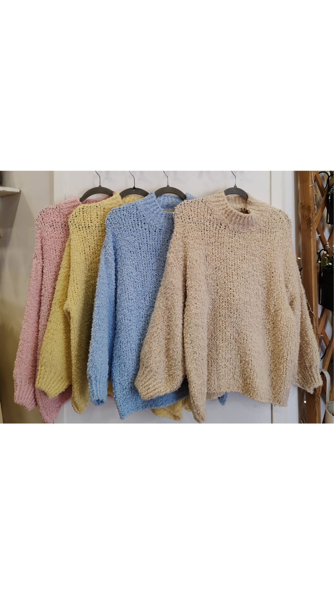 Jersey tejido de textura suave y abrigada. Diseño cómodo, de calce amplio y largo medio, perfecto para combinar con jeans o faldas