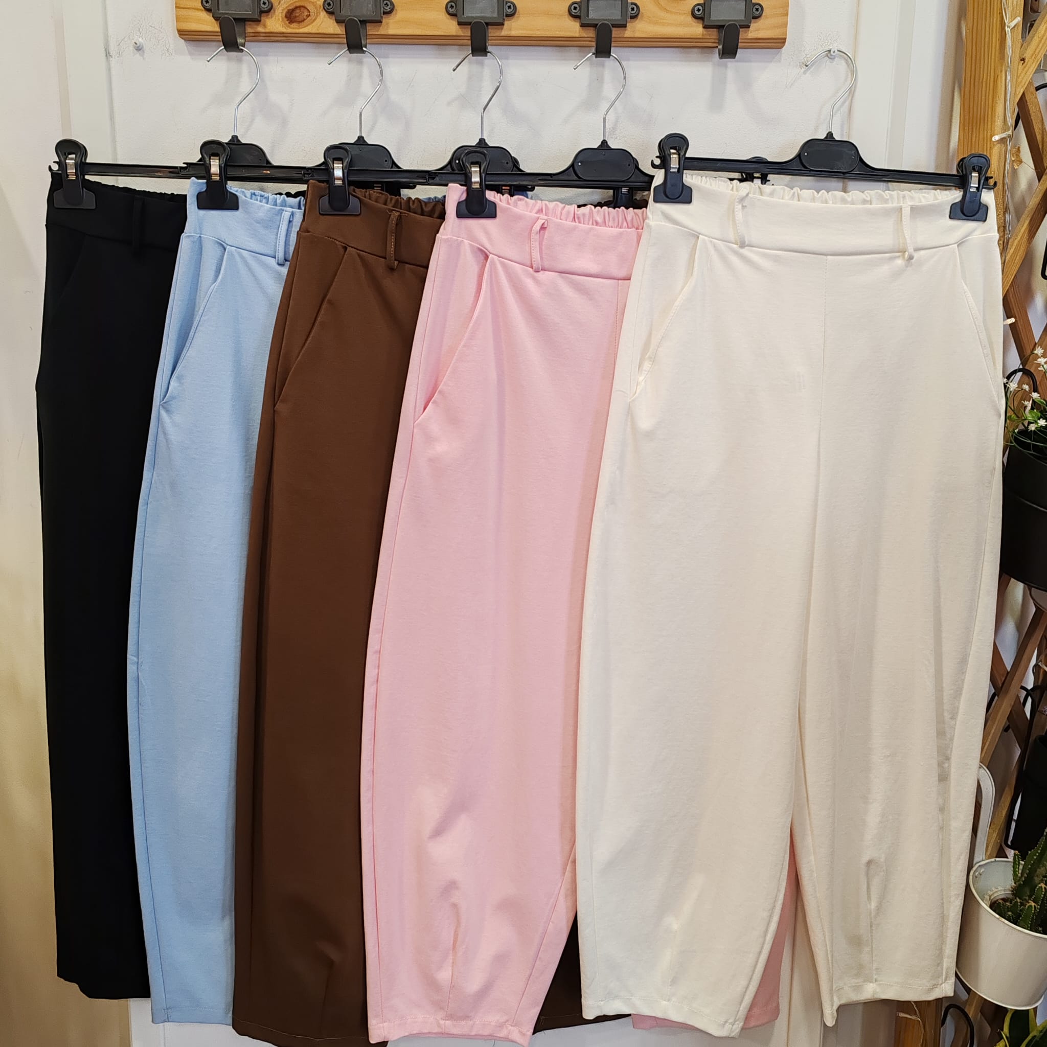 Pantalón Punto Milano cómodo y elástico, con cintura adaptable y corte recto ligeramente ajustado en el bajo. Incluye bolsillos laterales y trabillas para cinturón. Ideal para looks casuales o más arreglados.
