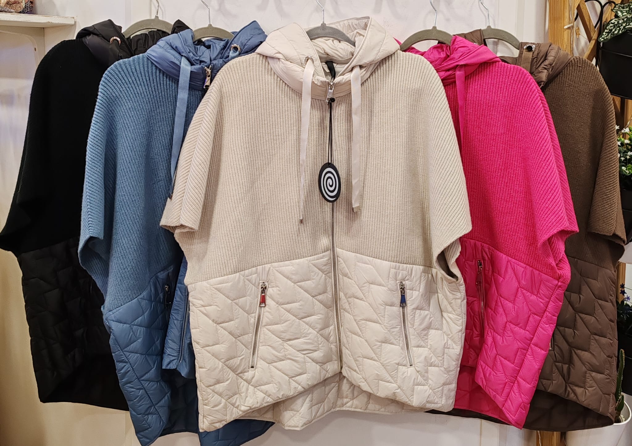 Parka tipo poncho combinada, ideal para un look cómodo y moderno en entretiempo. Diseño amplio con manga caída 3/4 que aporta estilo y confort.