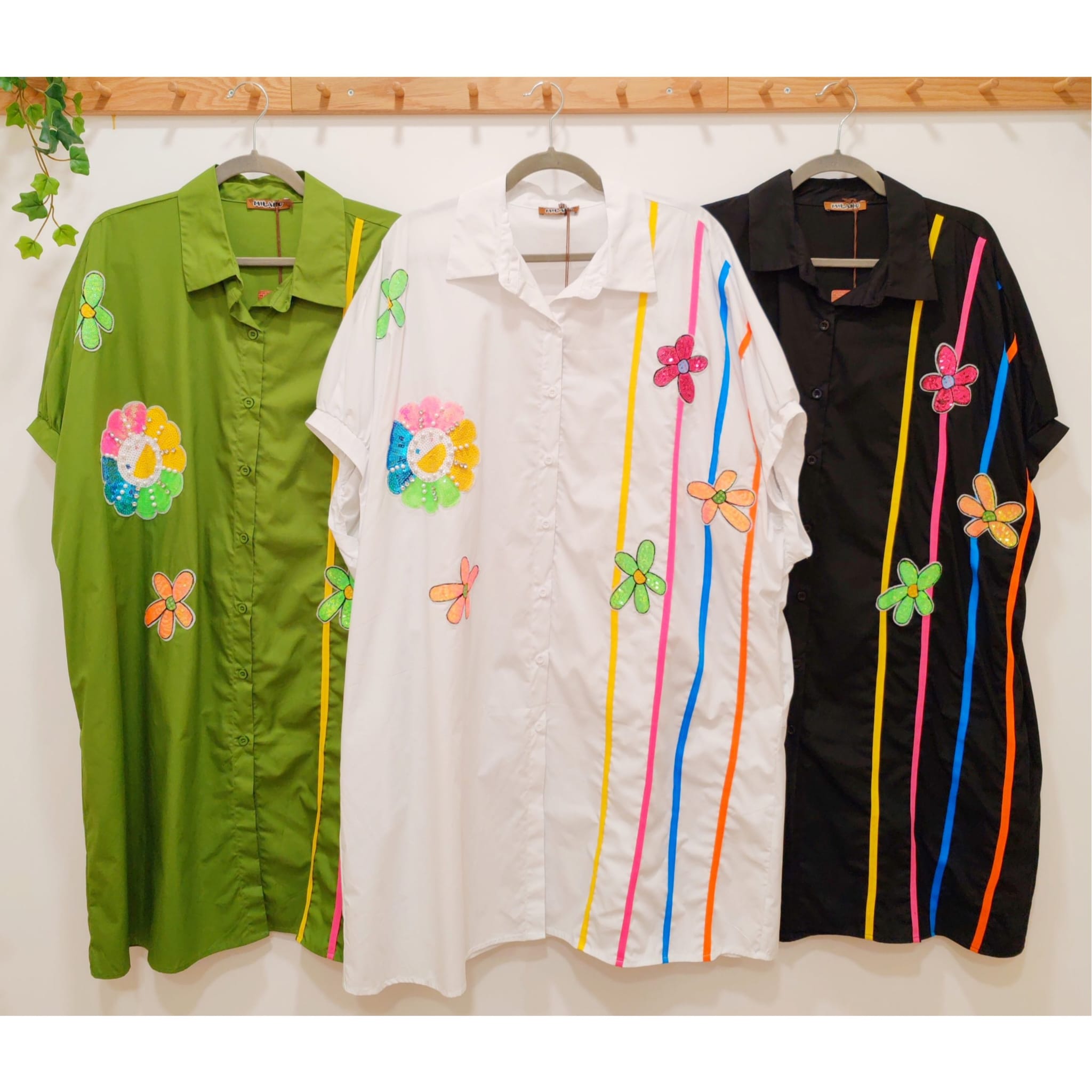 VESTIDO CAMISERO FLORES LENTEJUELAS